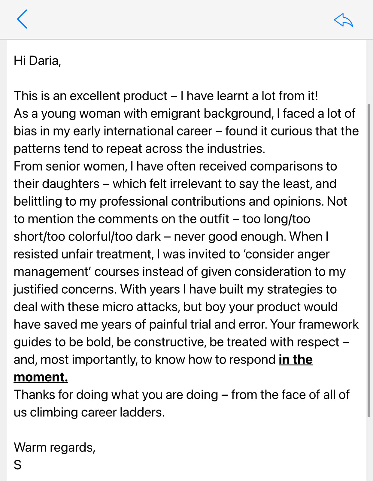 Luckily, at least I kept a poker face. But that’s not enough! So I sat down and revisited all the coaching I’ve ever done for objection handling and dealing with complicated people/ situations. I revised what I learned and came up with an enhanced framework. How to not only joke your way out of such comments, but also, how to CALL OUT THE BIAS. The more it becomes visible, the more shameful it will be seen and the more people will learn to keep their inappropriate comments to themselves.